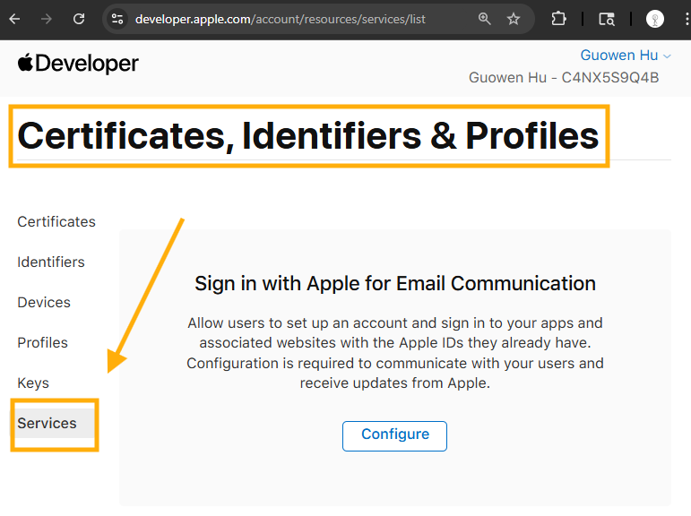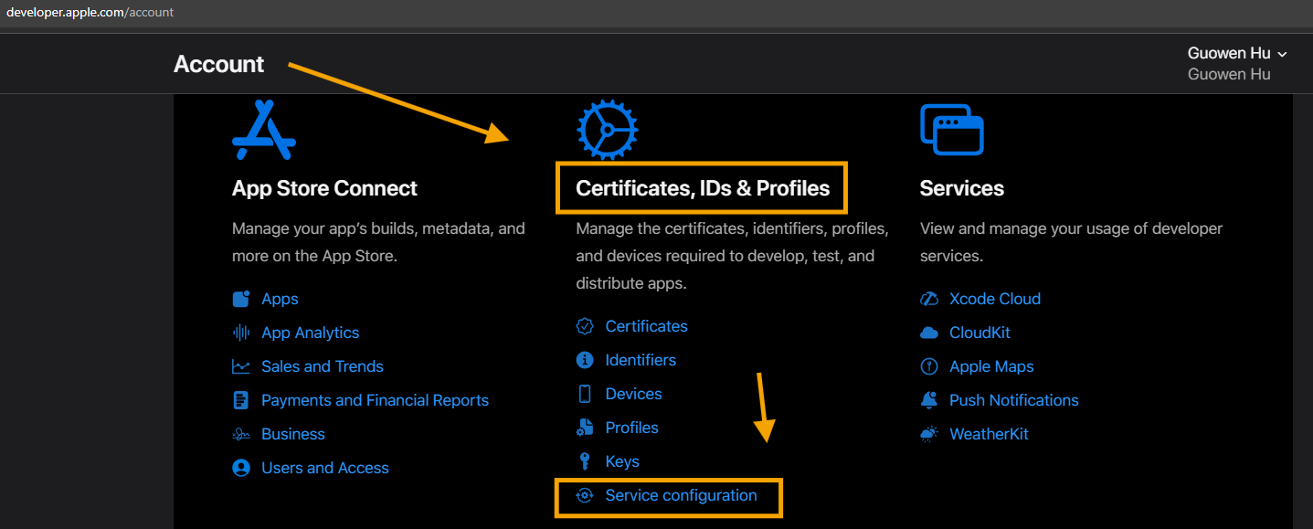 static apple token is generated on apple developer home page, use create token page