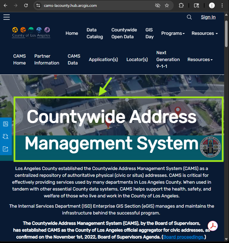 Los Angeles County established the Countywide Address Management System (CAMS)