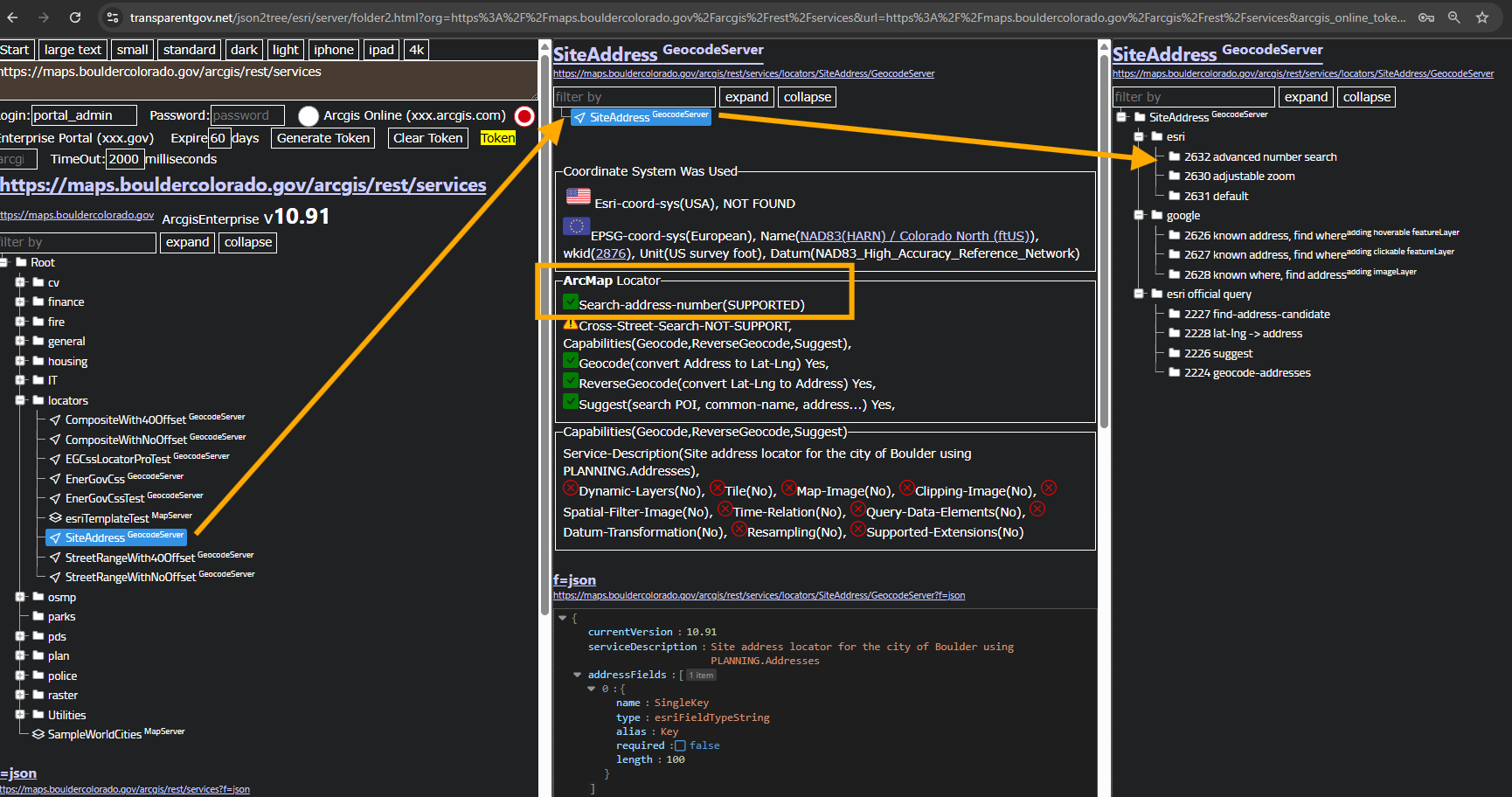 https://transparentgov.net/json2tree/esri/server/folder2.html?org=https%3A%2F%2Fmaps.bouldercolorado.gov%2Farcgis%2Frest%2Fservices&url=https%3A%2F%2Fmaps.bouldercolorado.gov%2Farcgis%2Frest%2Fservices&arcgis_online_token=&select_folder=53&select_folder_text=EGCssLocatorProTest+%3Csup%3EGeocodeServer%3C%2Fsup%3E&select_layer=-1&select_layer_text=EGCssLocatorProTest+%3Csup%3EGeocodeServer%3C%2Fsup%3E