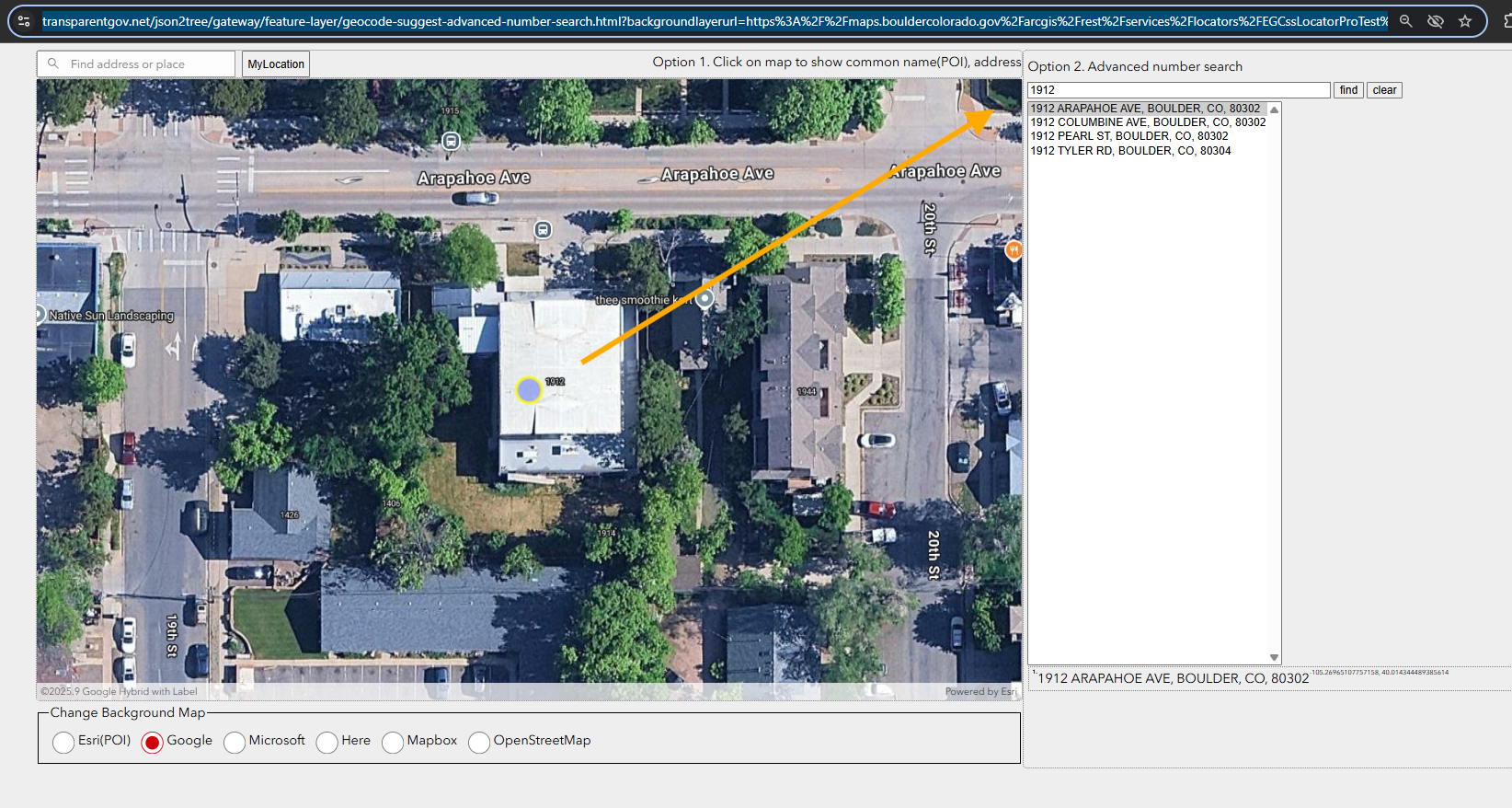 https://transparentgov.net/json2tree/gateway/feature-layer/geocode-suggest-advanced-number-search.html?backgroundlayerurl=https%3A%2F%2Fmaps.bouldercolorado.gov%2Farcgis%2Frest%2Fservices%2Flocators%2FEGCssLocatorProTest%2FGeocodeServer&_center_lat=40.014344489385614&_center_long=-105.26965107757158&_center_zoom=20&panto=0