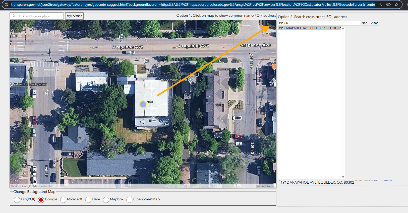 https://transparentgov.net/json2tree/gateway/feature-layer/geocode-suggest.html?backgroundlayerurl=https%3A%2F%2Fmaps.bouldercolorado.gov%2Farcgis%2Frest%2Fservices%2Flocators%2FSiteAddress%2FGeocodeServer&_center_lat=40.01447404864688&_center_long=-105.26990397536633&_center_zoom=20&panto=0