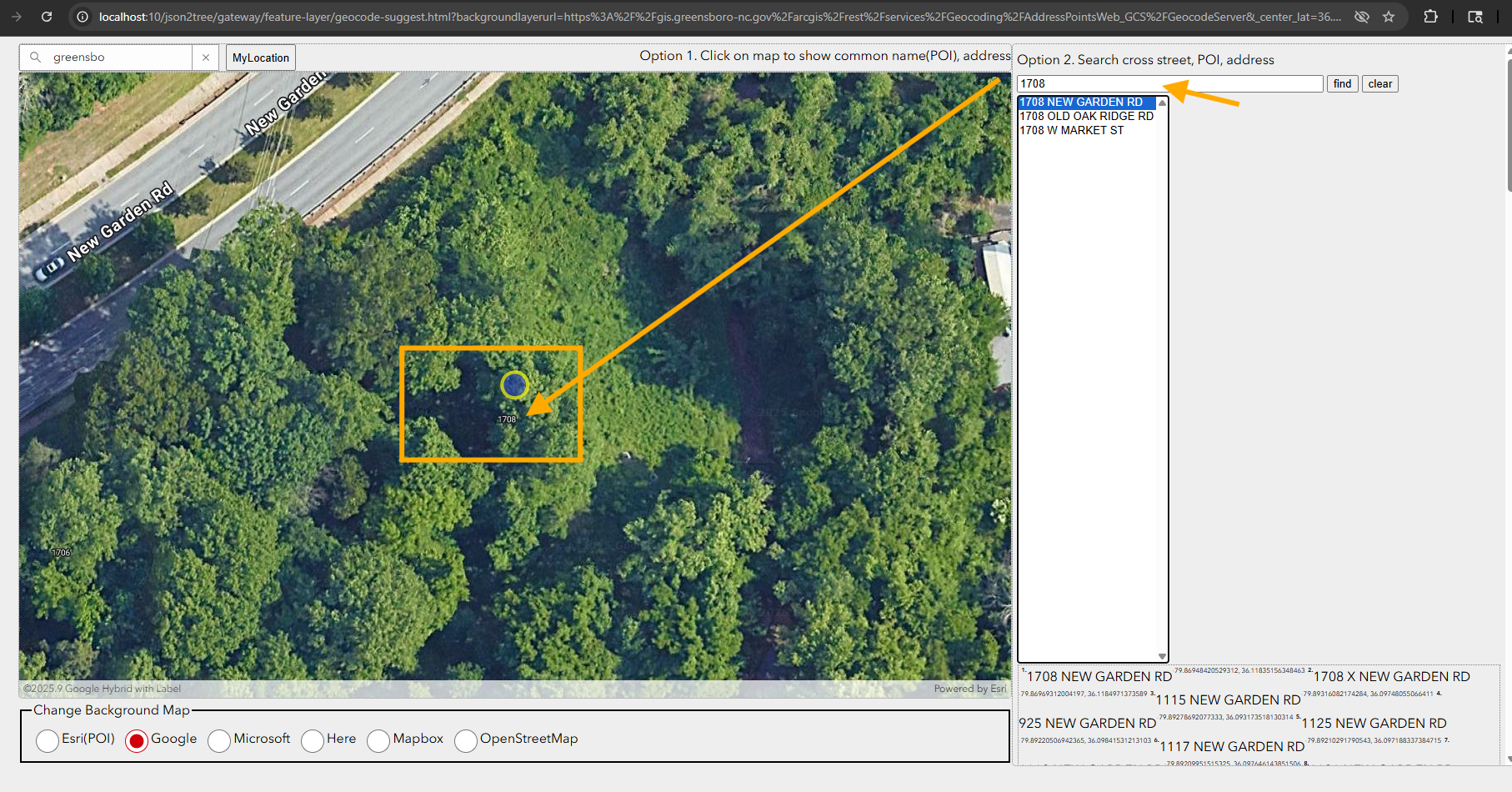 http://localhost:10/json2tree/gateway/feature-layer/geocode-suggest.html?backgroundlayerurl=https%3A%2F%2Fgis.greensboro-nc.gov%2Farcgis%2Frest%2Fservices%2FGeocoding%2FAddressPointsWeb_GCS%2FGeocodeServer&_center_lat=36.11835156348463&_center_long=-79.8694842052931&_center_zoom=20&panto=0