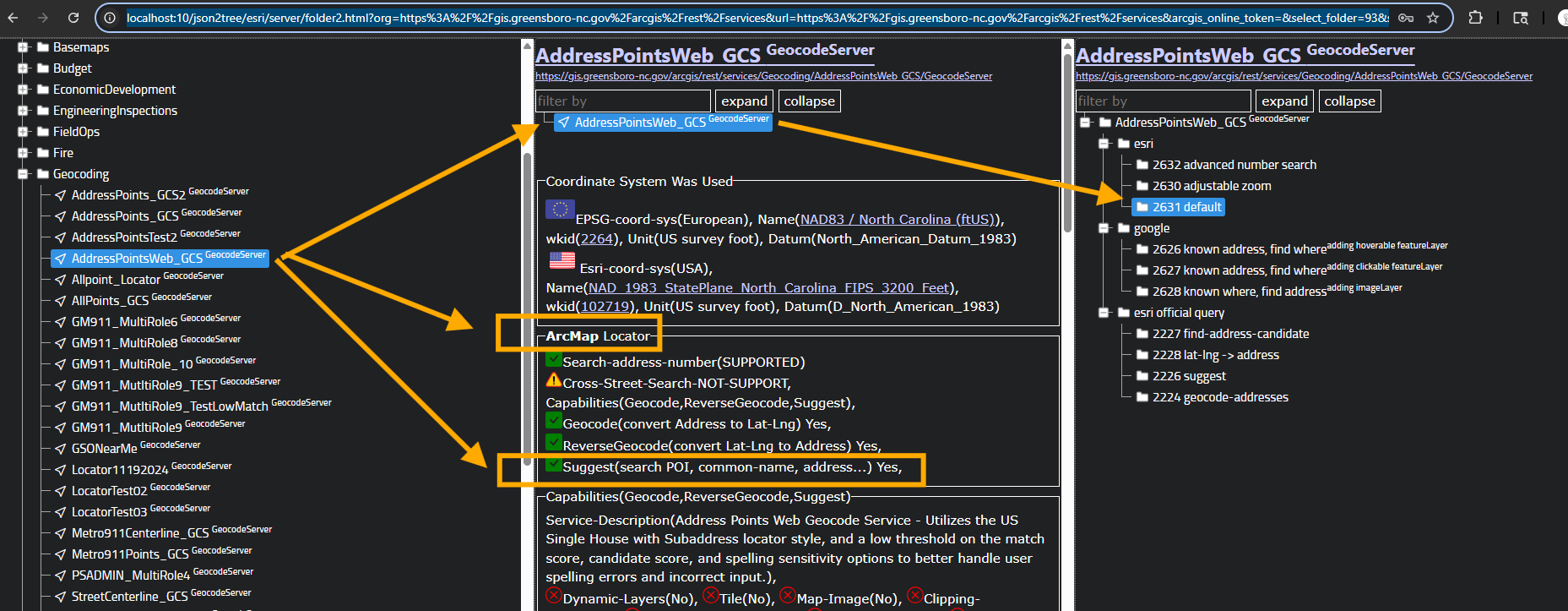 http://localhost:10/json2tree/esri/server/folder2.html?org=https%3A%2F%2Fgis.greensboro-nc.gov%2Farcgis%2Frest%2Fservices&url=https%3A%2F%2Fgis.greensboro-nc.gov%2Farcgis%2Frest%2Fservices&arcgis_online_token=&select_folder=93&select_folder_text=AddressPointsWeb_GCS+%3Csup%3EGeocodeServer%3C%2Fsup%3E&select_layer=-1&select_layer_text=AddressPointsWeb_GCS+%3Csup%3EGeocodeServer%3C%2Fsup%3E