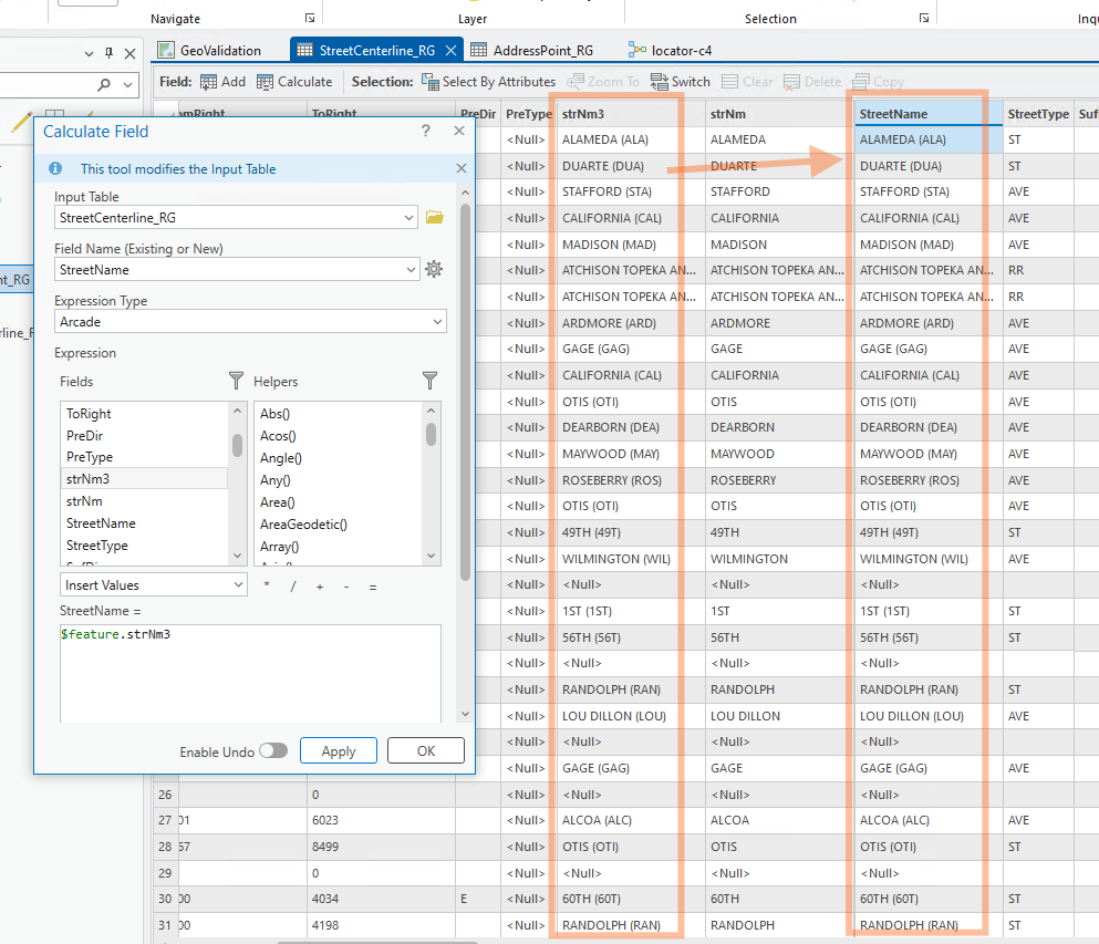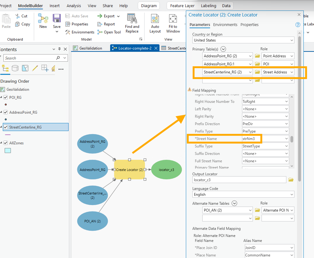 you will see invalid diagram, no more color, after you replace streetName field by strNm3, this need to be fix.