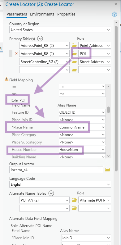 POI name + address, not changing locator field mapping, instead, swap the source content