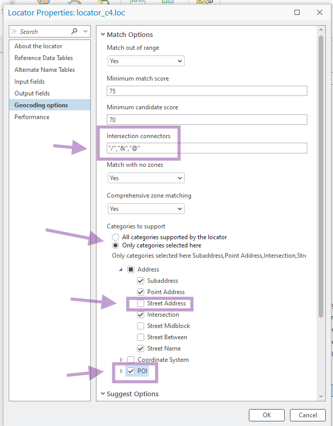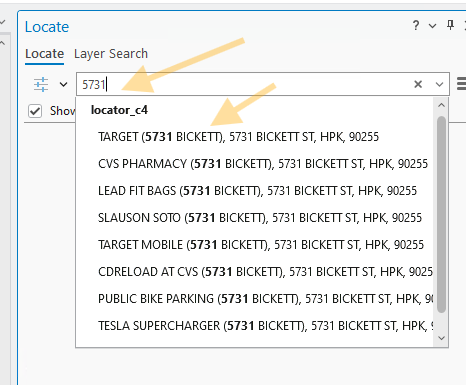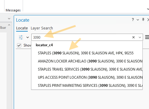 use address layer as POI role and re-do field mapping to ensure when you search 3090, it will list staple(POI) as result. Without this fix, when you search 3090, it only show 3090 slauson, will not show Staple(POI).