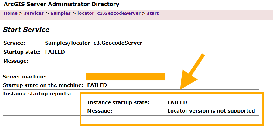 If your locator would not start, if you see any of these screen. It is because of ESRI's current locator does not work with previous Arcgis server version for example (v10.91).