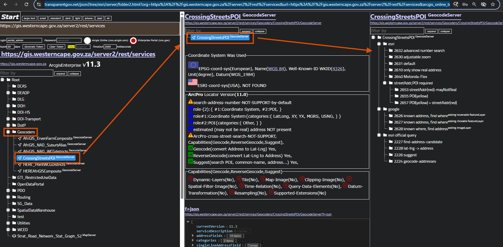 https://transparentgov.net/json2tree/esri/server/folder2.html?org=https%3A%2F%2Fgis.westerncape.gov.za%2Fserver2%2Frest%2Fservices&url=https%3A%2F%2Fgis.westerncape.gov.za%2Fserver2%2Frest%2Fservices&arcgis_online_token=&select_folder=76&select_folder_text=CrossingStreetsPOI+%3Csup%3EGeocodeServer%3C%2Fsup%3E&select_layer=-1&select_layer_text=CrossingStreetsPOI+%3Csup%3EGeocodeServer%3C%2Fsup%3E