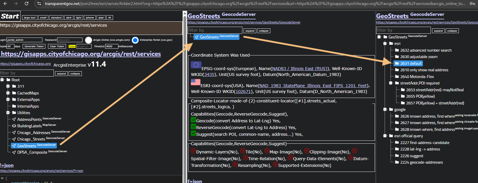 https://transparentgov.net/json2tree/esri/server/folder2.html?org=https%3A%2F%2Fgisapps.cityofchicago.org%2Farcgis%2Frest%2Fservices&url=https%3A%2F%2Fgisapps.cityofchicago.org%2Farcgis%2Frest%2Fservices&arcgis_online_token=&timeout=9000&select_folder=10&select_layer=-1&select_folder_text=GeoStreets+%3Csup%3EGeocodeServer%3C%2Fsup%3E&select_layer_text=GeoStreets+%3Csup%3EGeocodeServer%3C%2Fsup%3E
