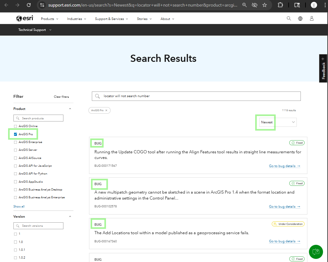 https://support.esri.com/en-us/search?s=Newest&q=locator+will+not+search+number&product=arcgis+pro&p=4