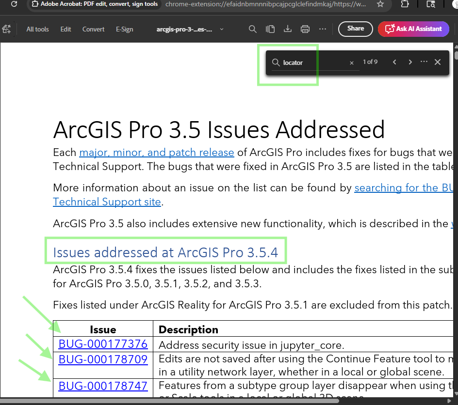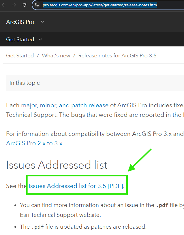 https://links.esri.com/arcgis-pro-issues-addressed-35x