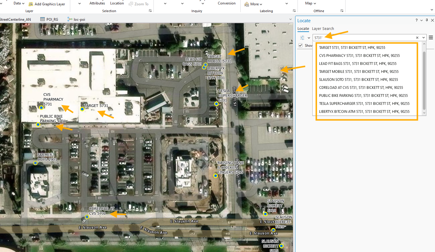 esri's stock locator show every business no matter it is big or small in search result. See picture.