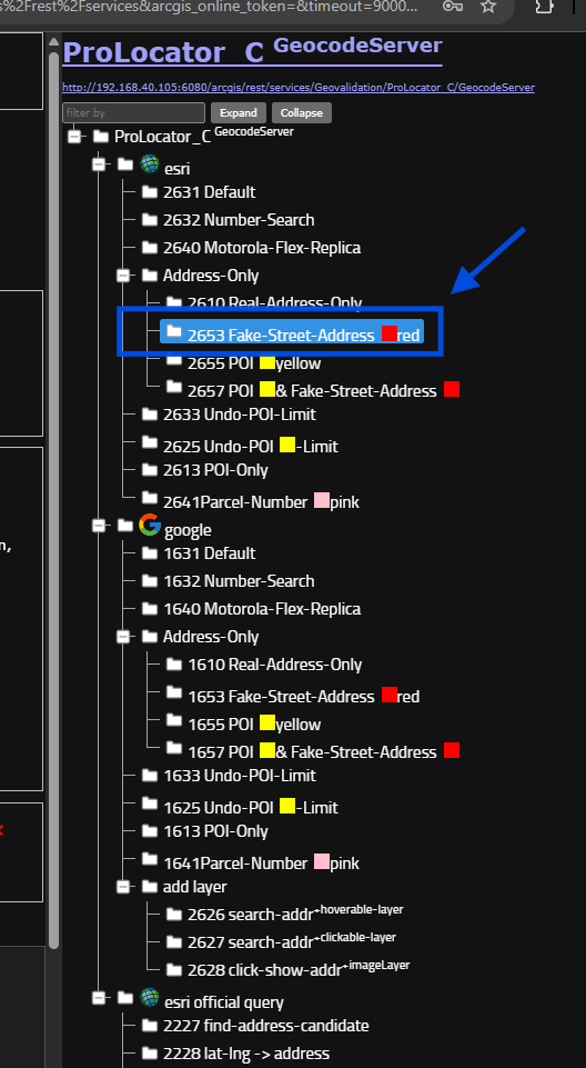red means not real address, 911 CAD will estimate a location for these kind of fake address.