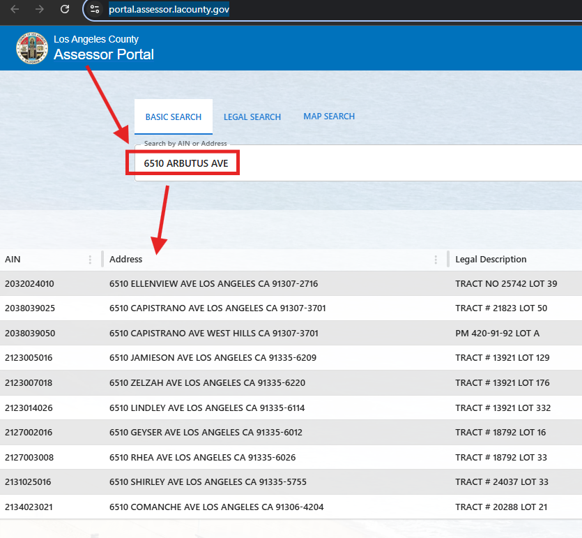 LA county acessor office using parcel address to collect property tax. However, something went wrong here. County collect tax on 3043, not on 6501.