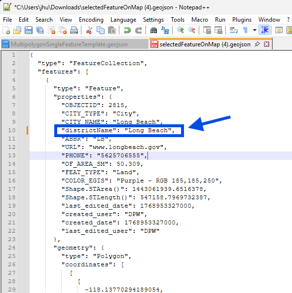 geojson is human readable text, you can just edit it