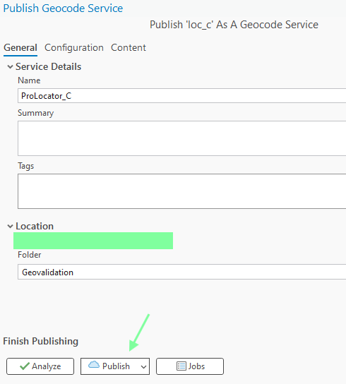 now open this locator in model builder, make sure, it is configured correctly,