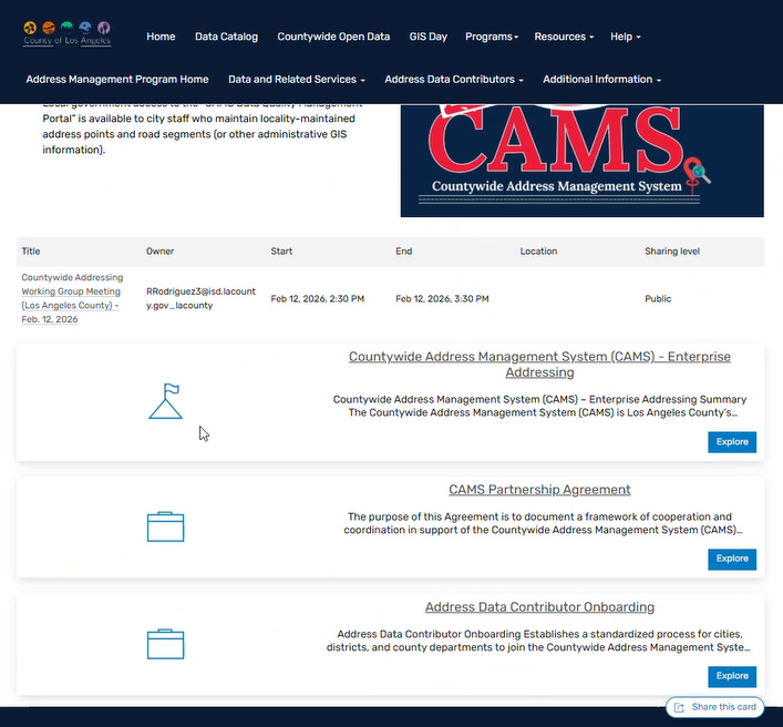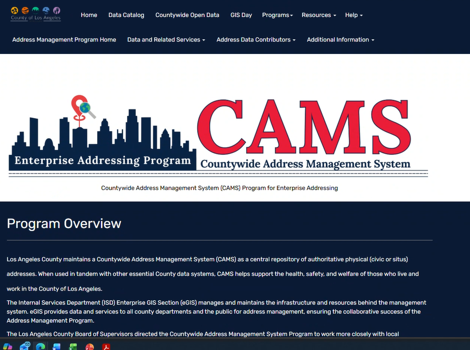CAMS validations is county's method to validate address https://dqm.gis.lacounty.gov/