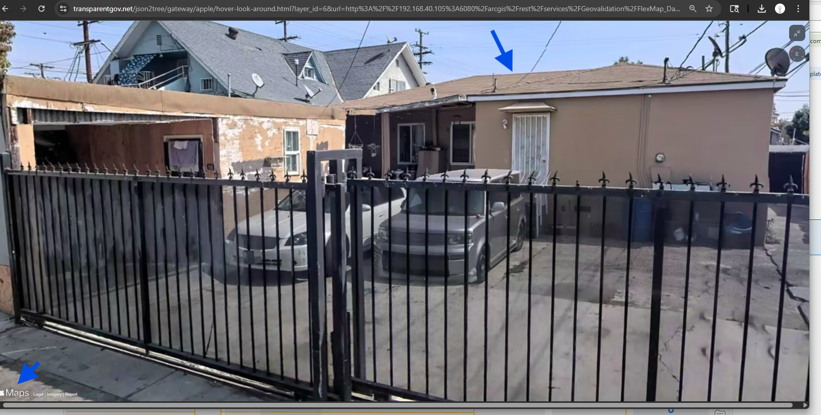 https://transparentgov.net/json2tree/gateway/apple/hover-look-around.html?layer_id=6&url=http%3A%2F%2F192.168.40.105%3A6080%2Farcgis%2Frest%2Fservices%2FGeovalidation%2FFlexMap_Dark%2FMapServer&layer=hp_dispatch¢er_lat=33.985330349964016¢er_long=-118.23089911720115¢er_zoom=0.002%2C0.002&panto=0&maptype=google-hybrid