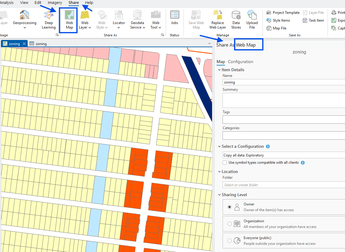 Do not publish(share) web map as show here