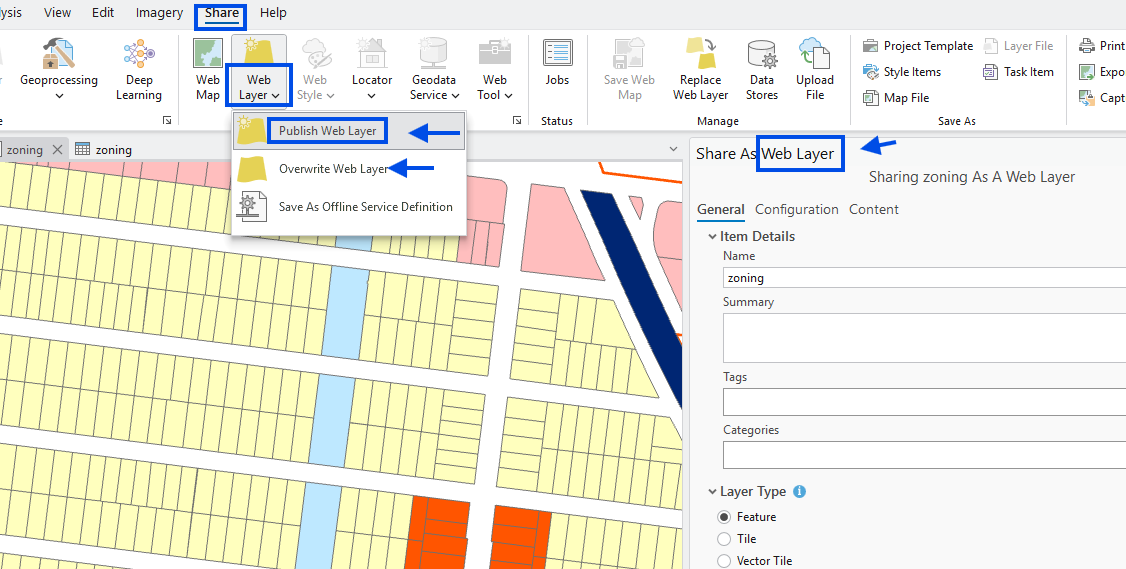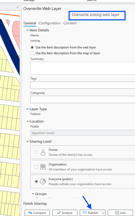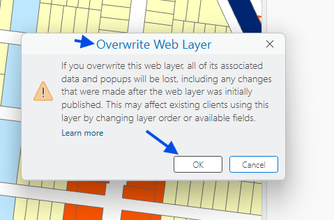 click publish, now your arcgis online (web layer ) get updated.