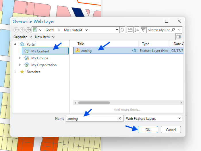 now, select the existing layer, to overwrite