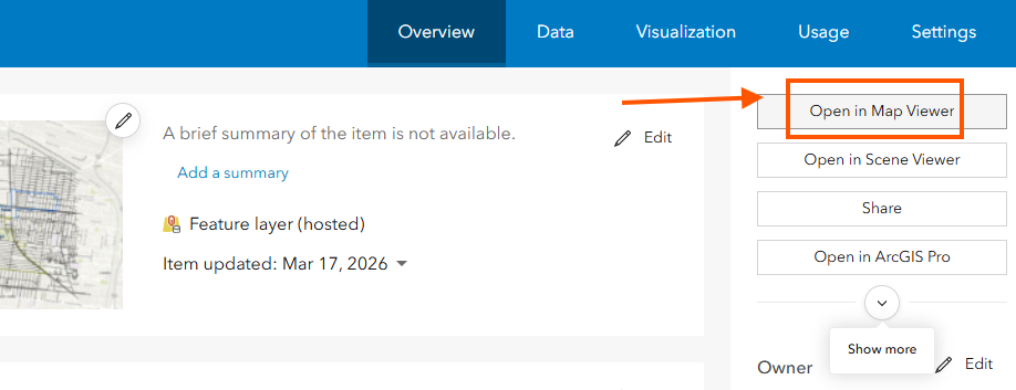 click hosted feature layer, it will open this web layer in a unsaved web map.