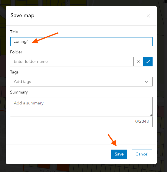 give a name, to save this web map