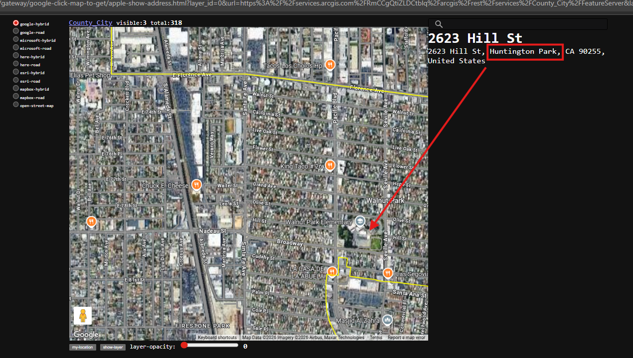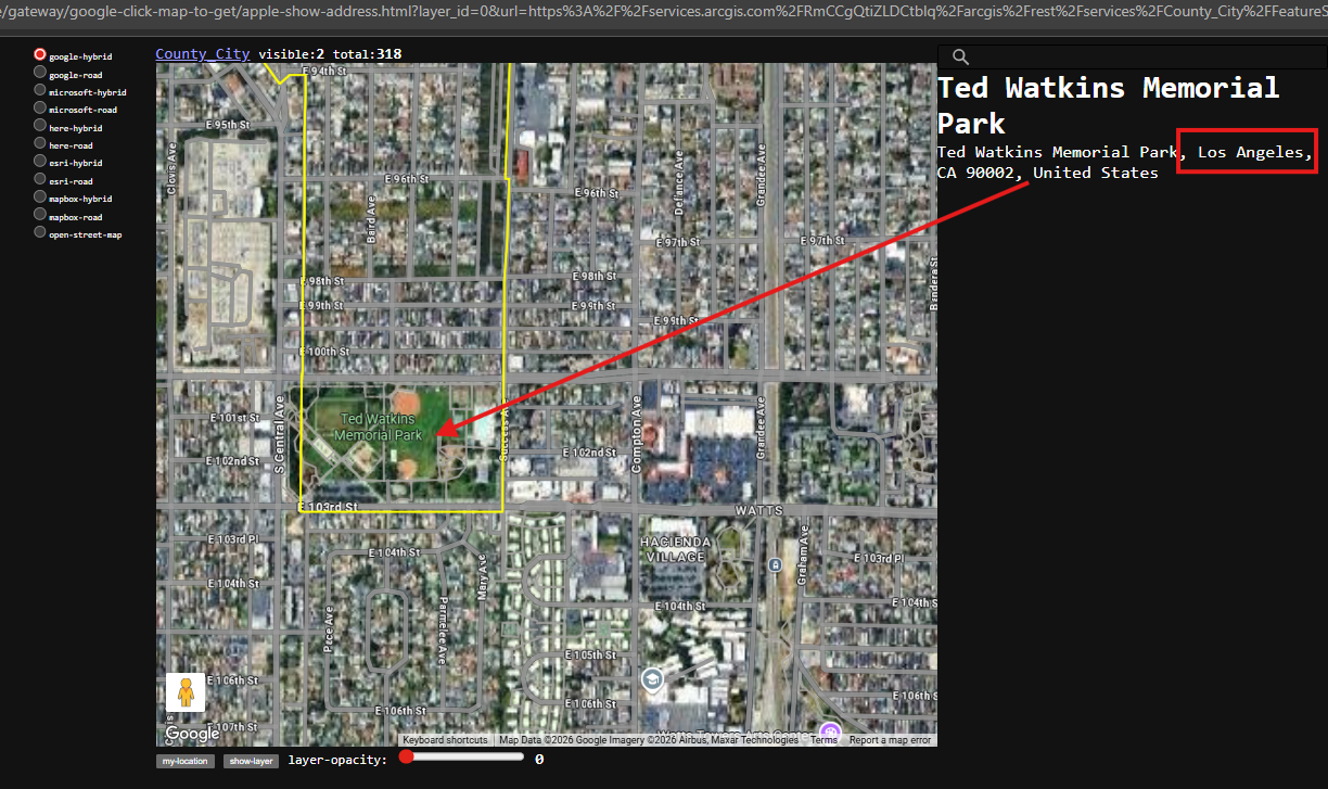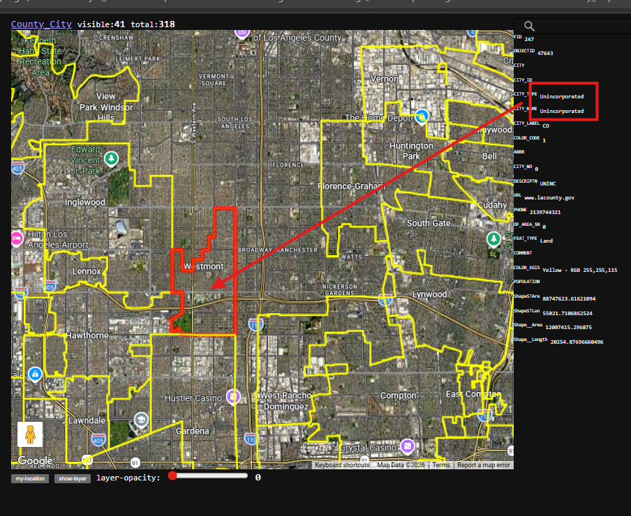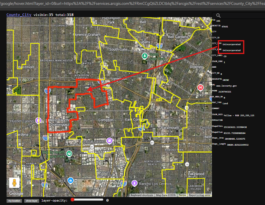 https://transparentgov.net/json2tree/gateway/google/hover.html?layer_id=0&url=https%3A%2F%2Fservices.arcgis.com%2FRmCCgQtiZLDCtblq%2Farcgis%2Frest%2Fservices%2FCounty_City%2FFeatureServer&layer=County_City&panto=0¢er_lat=33.91933347673819¢er_long=-118.24080059516766¢er_zoom=12