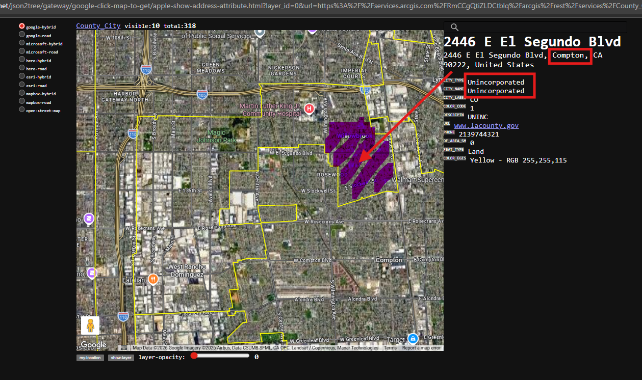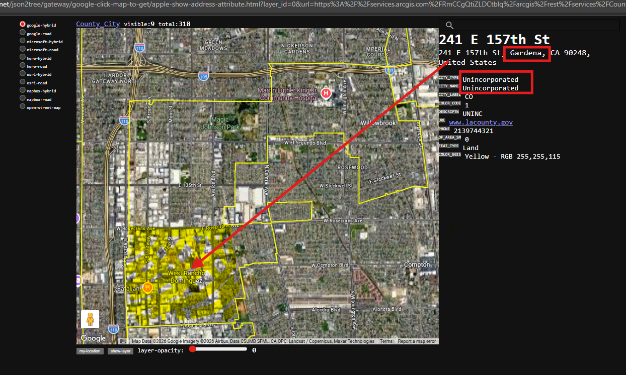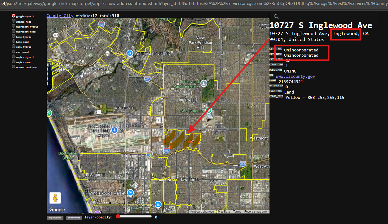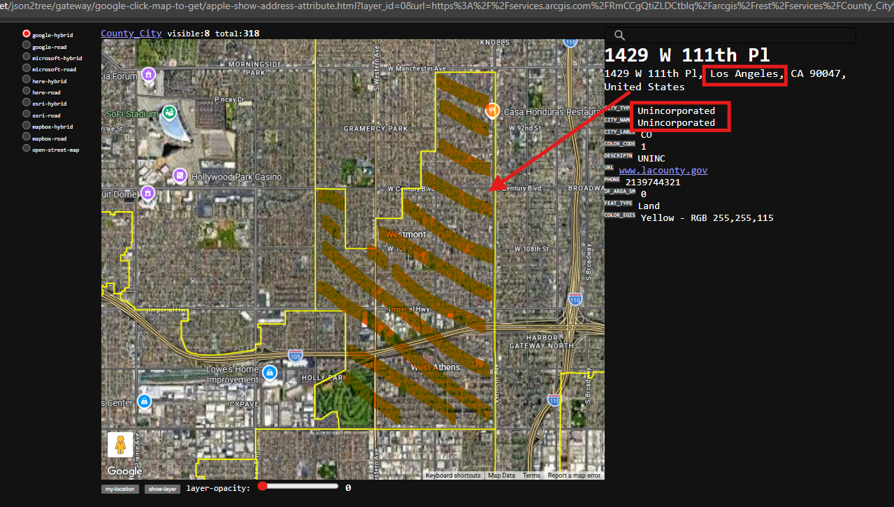 https://transparentgov.net/json2tree/gateway/google-click-map-to-get/apple-show-address-attribute.html?layer_id=0&url=https%3A%2F%2Fservices.arcgis.com%2FRmCCgQtiZLDCtblq%2Farcgis%2Frest%2Fservices%2FCounty_City%2FFeatureServer&layer=County_City&panto=0¢er_lat=33.97219876861186¢er_long=-118.22966485552881¢er_zoom=13