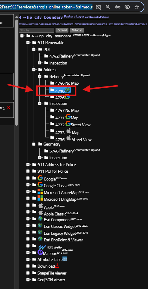 https://transparentgov.net/json2tree/esri/server/folder2.html?org=services7.arcgis.com&url=https%3A%2F%2Fservices7.arcgis.com%2FKsKHfIdWlYuhtTNJ%2Farcgis%2Frest%2Fservices&arcgis_online_token=&timeout=9000&select_folder=1&select_layer=4&select_folder_text=hp_city_boundary+%3Csup%3EFeatureServer%3C%2Fsup%3E&select_layer_text=4+%26%23x21E2%3B+hp_city_boundary+%3Csup%3EFeature+Layer%3Csub%3E+esriGeometryPolygon%3C%2Fsub%3E%3C%2Fsup%3E