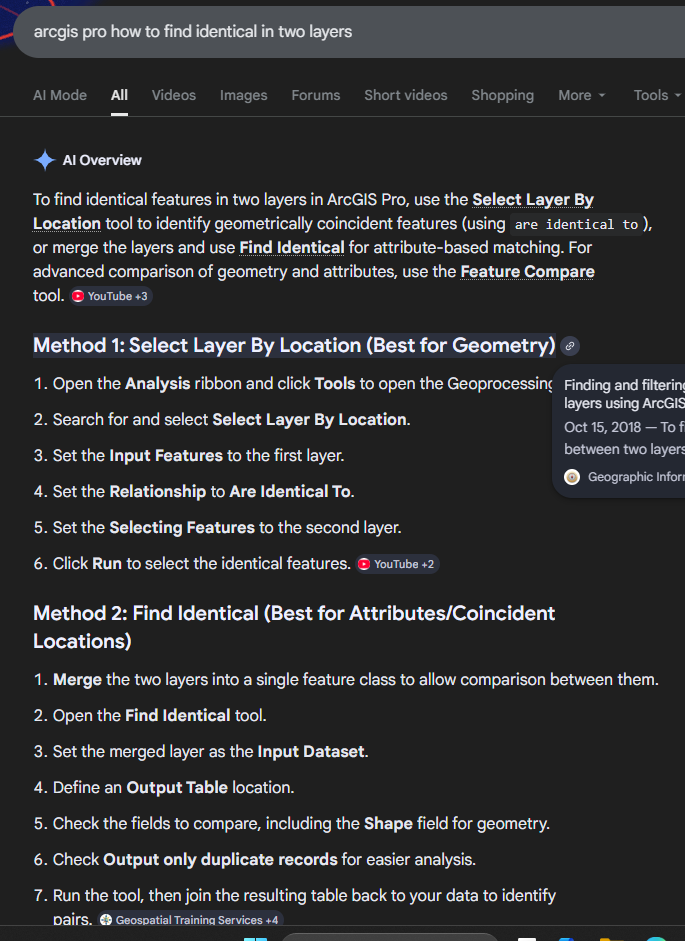 For USGS, they have old reservoir layer, received a new state submitted layer, how to find identical polygon between these two layer? use Arcpro is multi steps, we need a automatic tool by just one - click to do all job